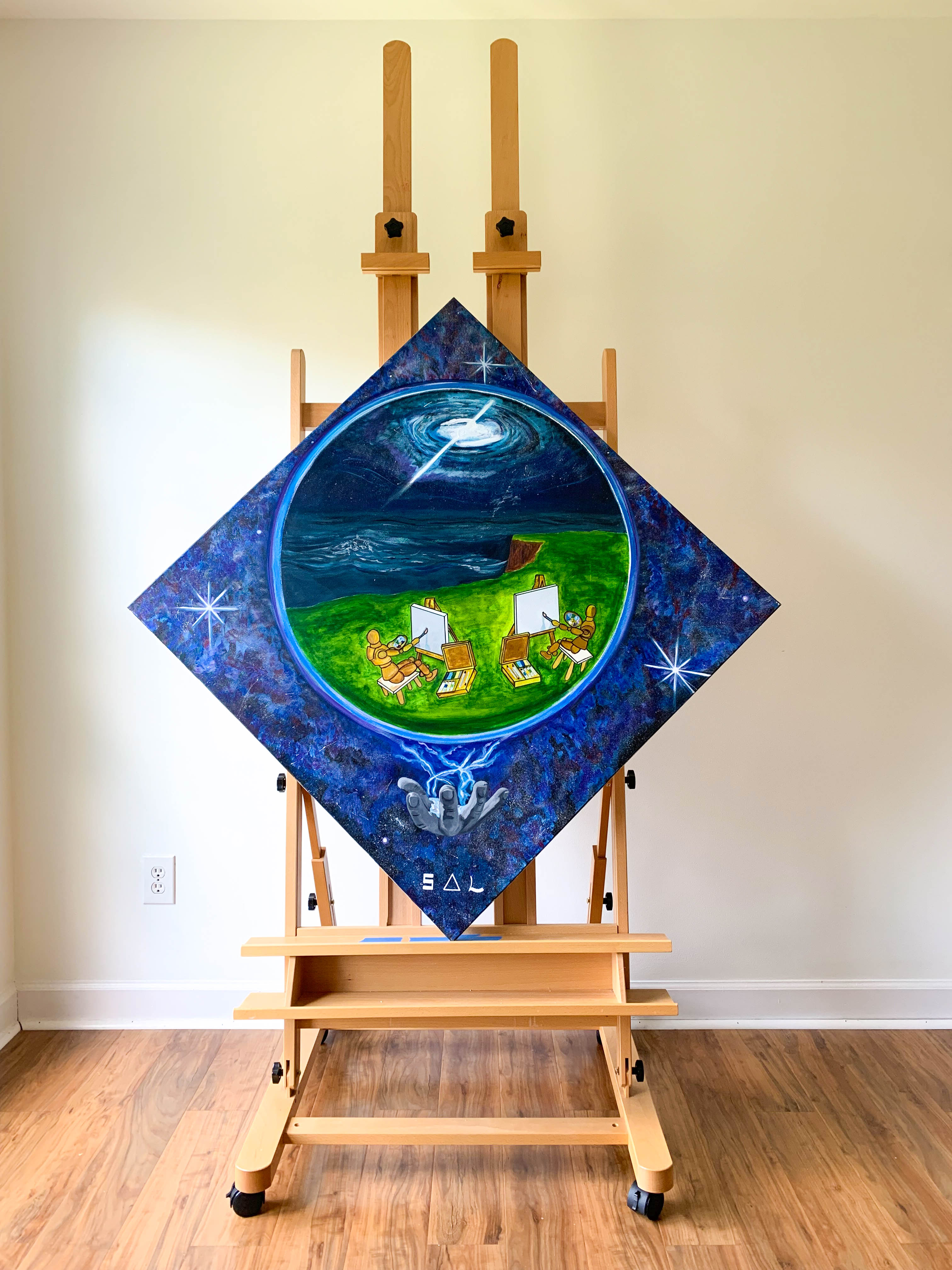 To ensure the safety of the work during transit, this oversized piece ships unstretched and rolled in a heavy-duty tube. Please note that stretcher bars are not included. The collector will need to have the canvas professionally stretched at a local frame shop.