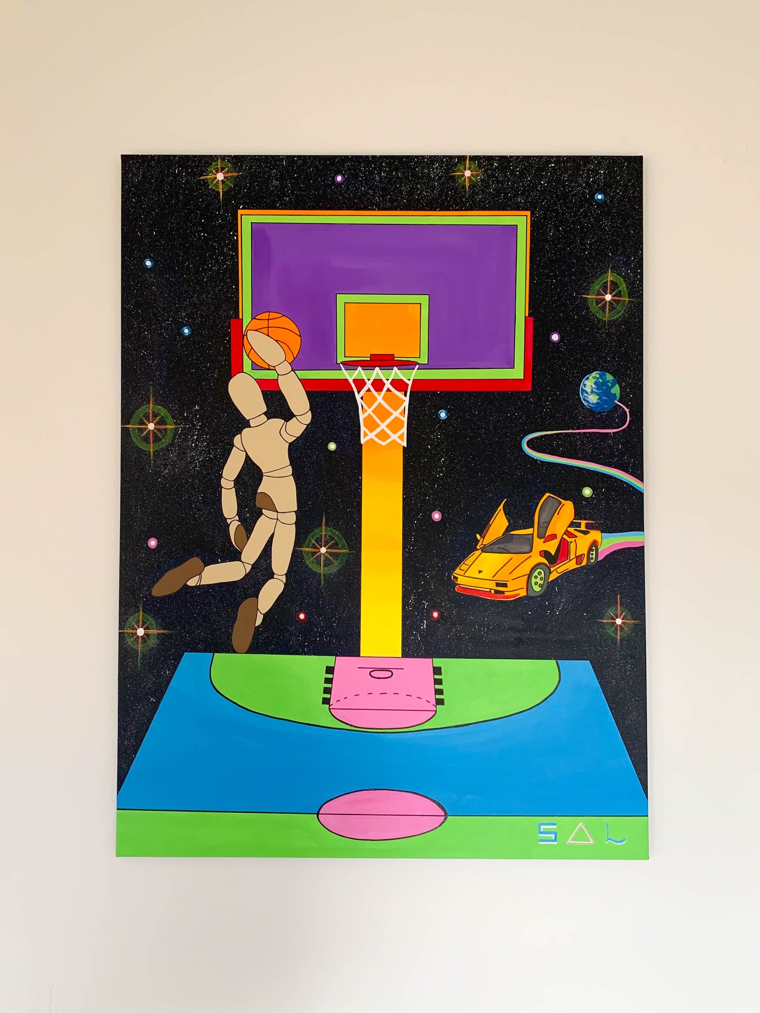 To ensure the safety of the work during transit, this oversized piece ships unstretched and rolled in a heavy-duty tube. Please note that stretcher bars are not included. The collector will need to have the canvas professionally stretched at a local frame shop.